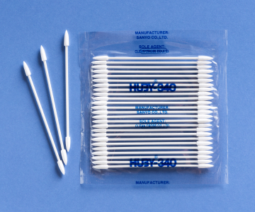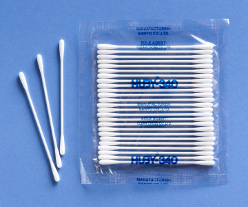 BB-003は ヘッドの部分を独自の技術で尖らせた3インチサイズベイビータイプの綿棒です。ヘッドは尖っていますがリントが少なく吸水性に優れていますので溶液を浸して細部をクリーニングする場合にとても便利です。顕微鏡・光学器・コネクターのクリーニング、精密機械の製造工程において使用されています。また焼却が可能なので、工業用綿棒を大量に消費する工場に向いています。