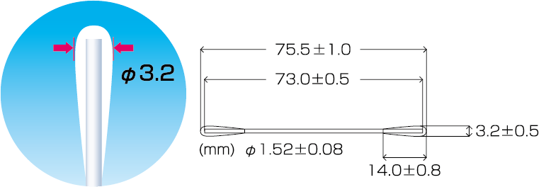 CA-003は扱いやすい3インチのコットンアプリケーターです。ヘッド部分を独自の技術で尖らせており、軸は太くしっかりしているので使いやすく、尖った先を利用し、細かな部分にも対応できます。機械のメンテナンスから精密部品のクリーニングまで使われている製品です。