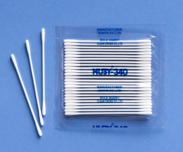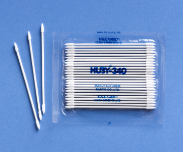 BB-012は吸水性を保つために軸を削り綿部を増やし、溶液で浸して細部をクリーニングするエンドユーザー様のニーズに応えて開発したものです。3インチサイズベイビータイプの綿棒で、ヘッド部分は球状でリントが少なく細いヘッドですが吸水性に優れています。コネクターのクリーニング、精密機械の製造工程、基板や精密部分のフラックス除去などで利用されています。