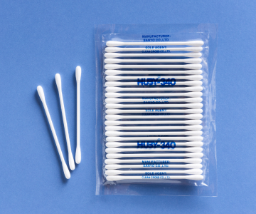 BB-001は3インチサイズベイビータイプの綿棒です。ヘッドは球状でリントが少なく吸水性に優れていますので溶液を浸して利用する場合にとても便利です。顕微鏡・光学器・コネクターのクリーニング、精密機械の製造工程において使用されています。また焼却が可能なので、工業用綿棒を大量に消費する工場に向いています。