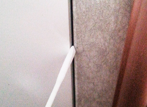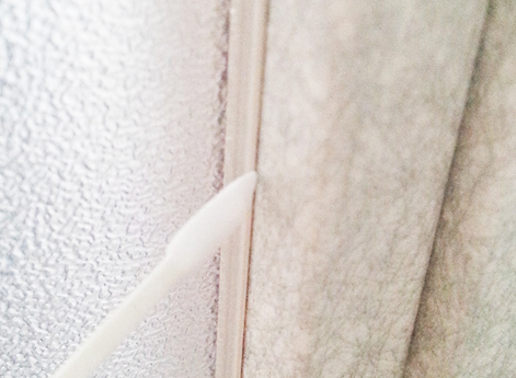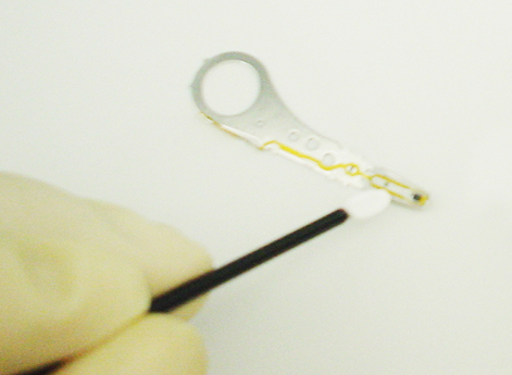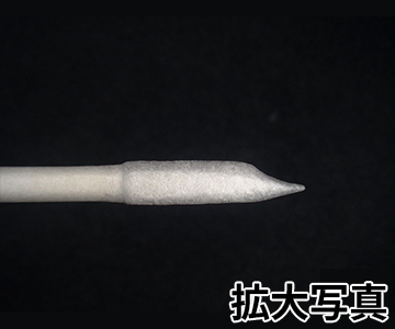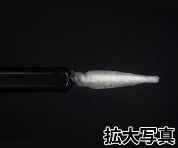 BB-001の先端を潰すことによって、先端で電子部品等の間隔のせまい箇所の清掃が可能になりました。先端部分は密度の詰まった綿ですので、IPA等溶剤を利用しても先端が崩れません。