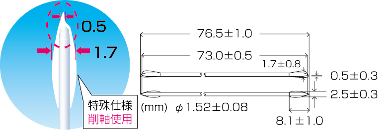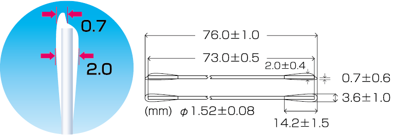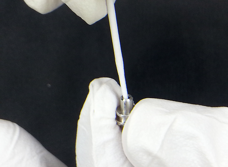 SS-001は、3インチの極細コットンアプリケーターです。紙軸に特殊な削りを加えることによりコシのある極細でフラットな端面に仕上げております。吸水性に優れ、焼却ができるので、廃棄が簡単です。これまで清掃が難しかった凹型の微細な箇所やフラットな面(LC型光コネクタ等)の清掃に適しております。